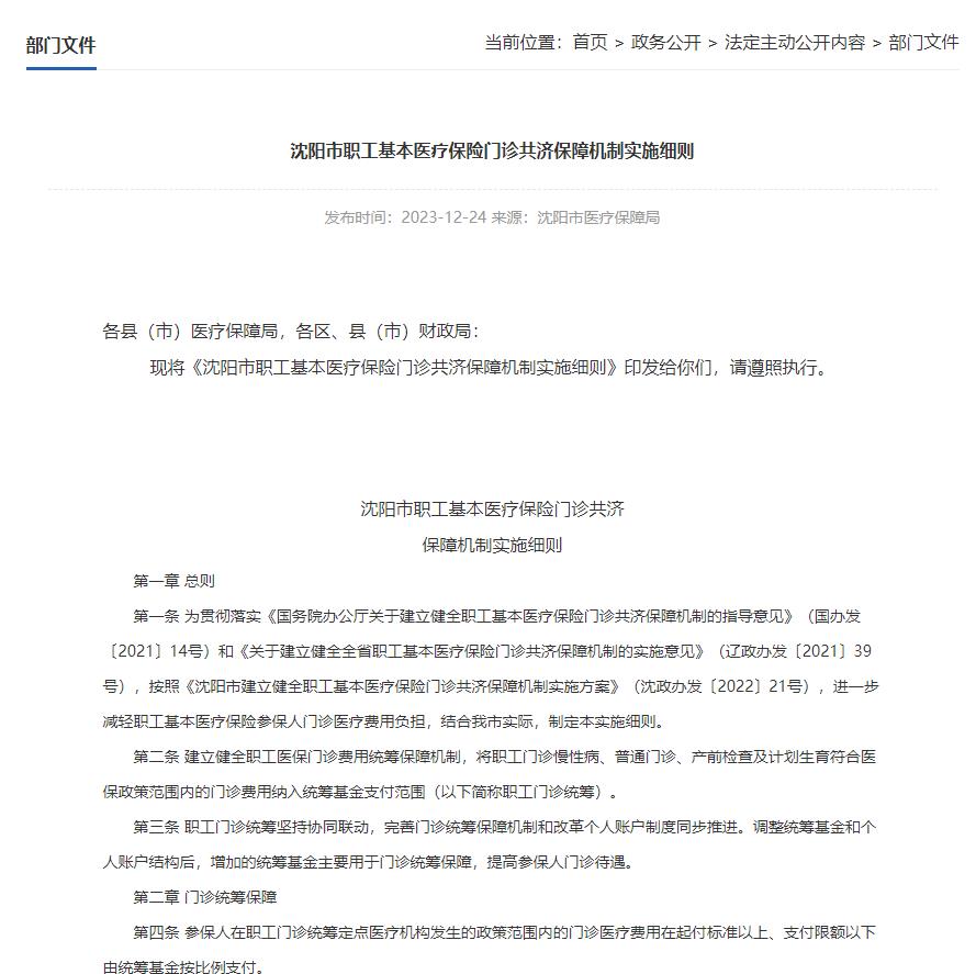 沈陽市職工基本醫(yī)療保險(xiǎn)門診共濟(jì)保障機(jī)制實(shí)施細(xì)則